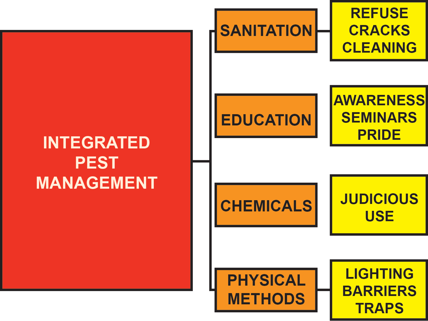 These can include the type and position of lighting, location and treatment of dumpsters, sanitation and chemical procedures, physical barriers to insects, the ecology of the surrounding area and more.